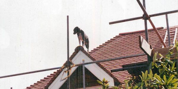My 8-week-old puppy came to work with me for a few days but she ended up staying 17 years. Proving very popular with my customers and a key member of the team so I changed the name to S G G ROOFING AND DOG.